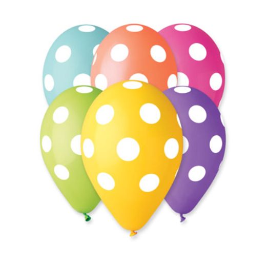 Gumeni baloni štampani sa svih strana. Štampa na balonu je u beloj boji. Veličina balona 12″ inča ili oko 30cm. Baloni su izuzetnog kvaliteta. Kada se naduvaju helijum gasom mogu da lete oko 20 sati a sa dodatkom hi floata od 1-4 sedmice. Baloni su pakovani u više boja u kesici (žuti, narandžasti, roze, plavi, zeleni, crveni)